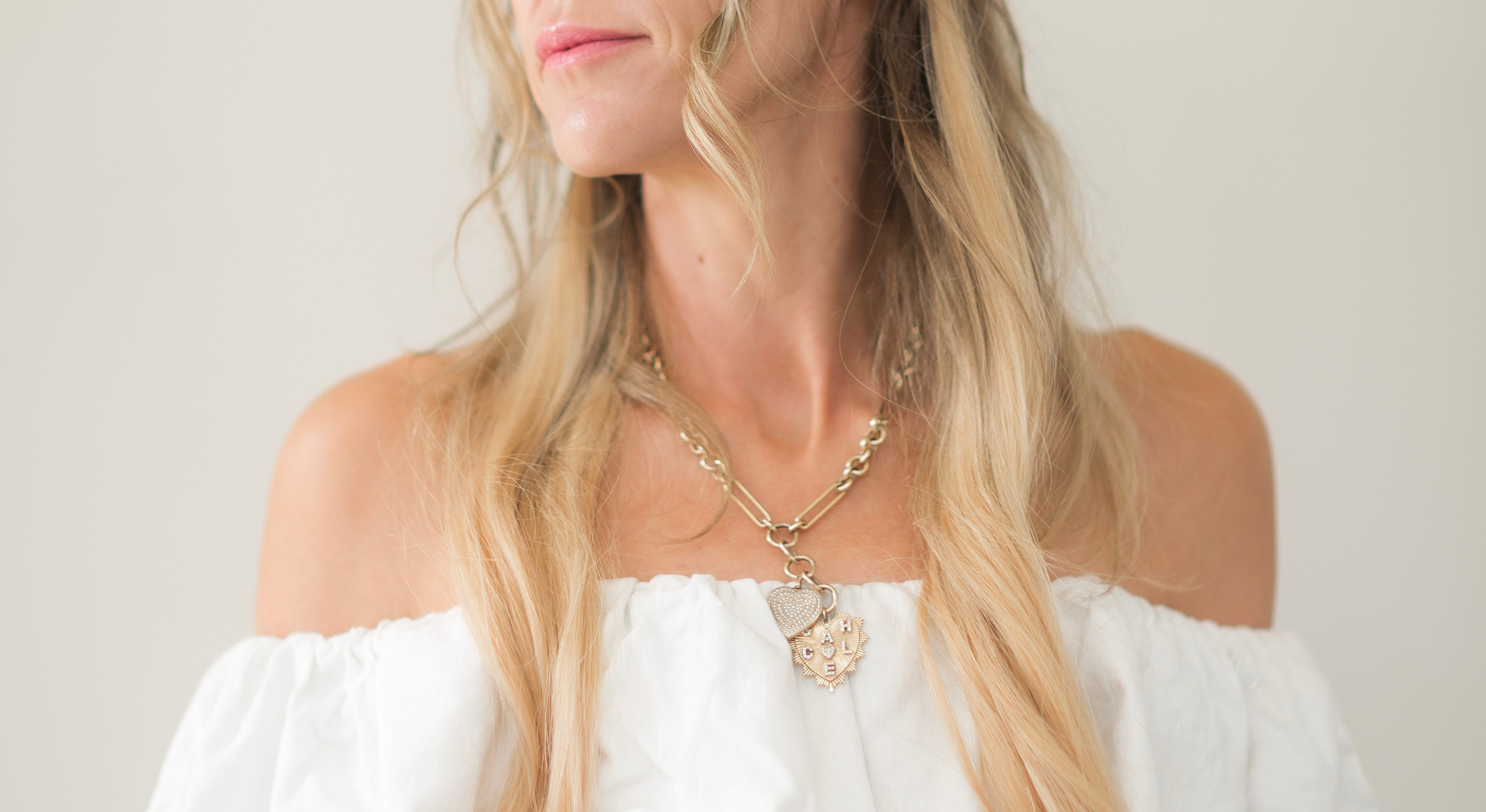 14K Gold Vermeil Coco Necklace With Double Pendants Lucy Diamond and Ella Custom Heart Charm